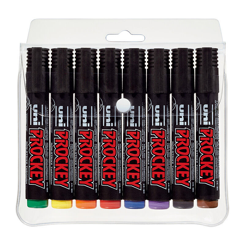 Permanent, odourless, water-based pigment ink marker. Prockey markers write on almost any surface and does not bleed through thin or porous paper.
